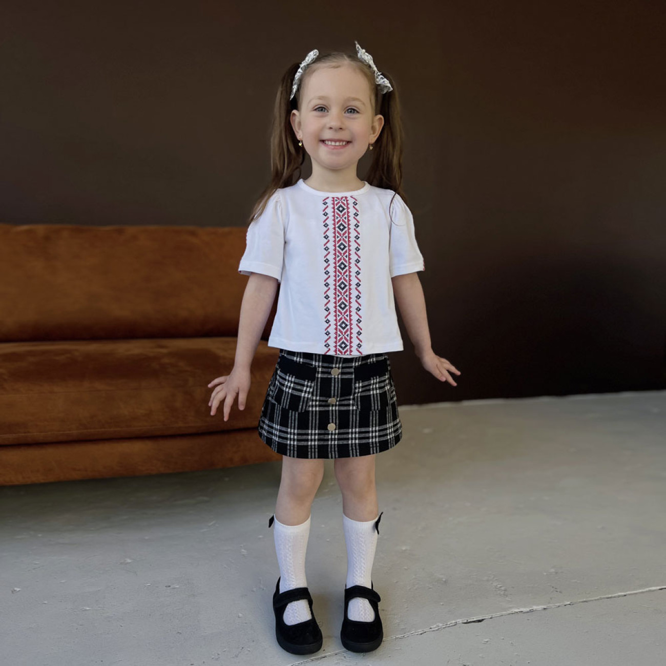 Блуза вышиванка для девочки 4256-1 (стрейч кулир)